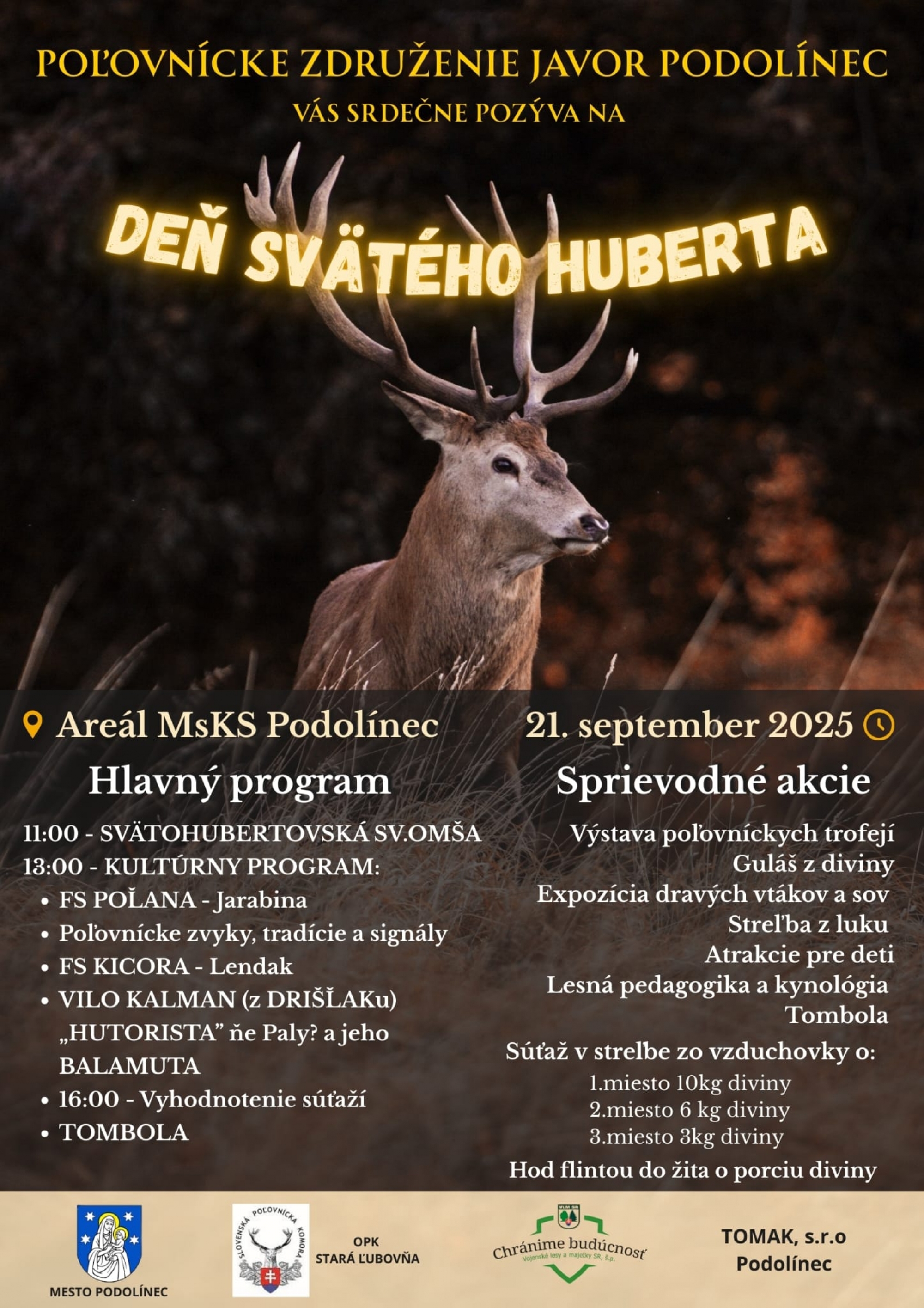 Srdečne vás pozývame na podujatie plné tradícií, hudby a poľovníckej atmosféry 21. septembra v areáli MsKS.